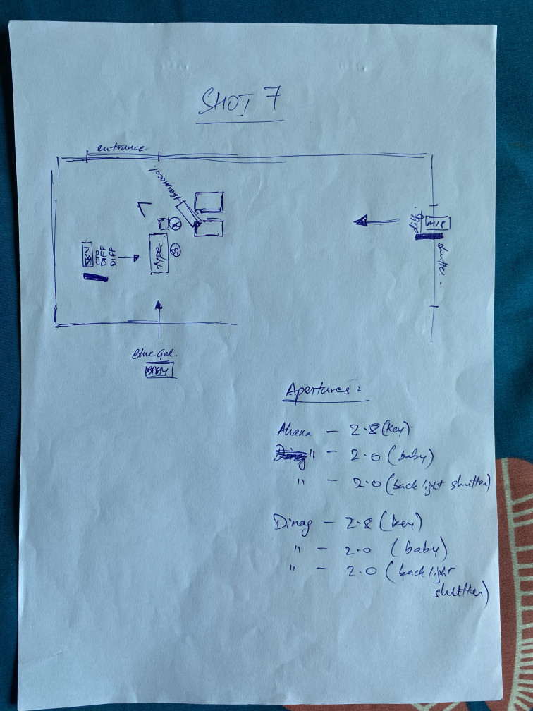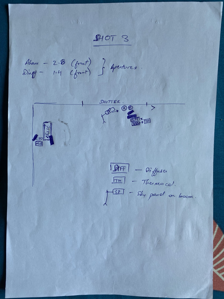 Some of the lighting diagrams for the shoot.