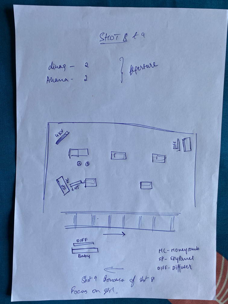 I made the lighting diagrams for each of the shots, as well as the focus-pulling for the last shot. I also edited and color-corrected the final video.