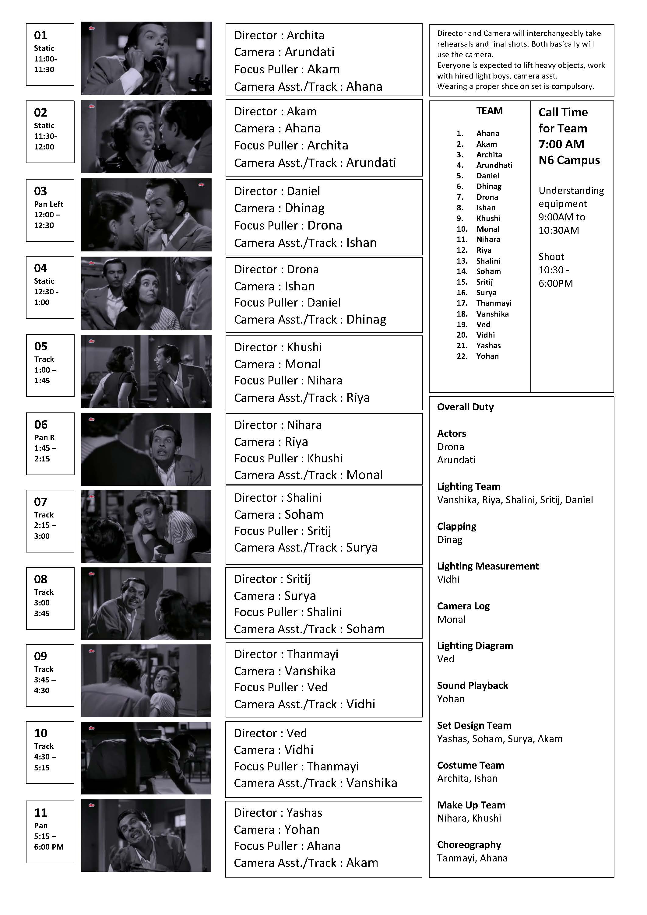 The video was shot by a group of us, each doing a different role. With each shot, roles would switch in rotation, so that everyone would get a chance to carry out all the roles.