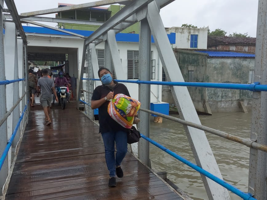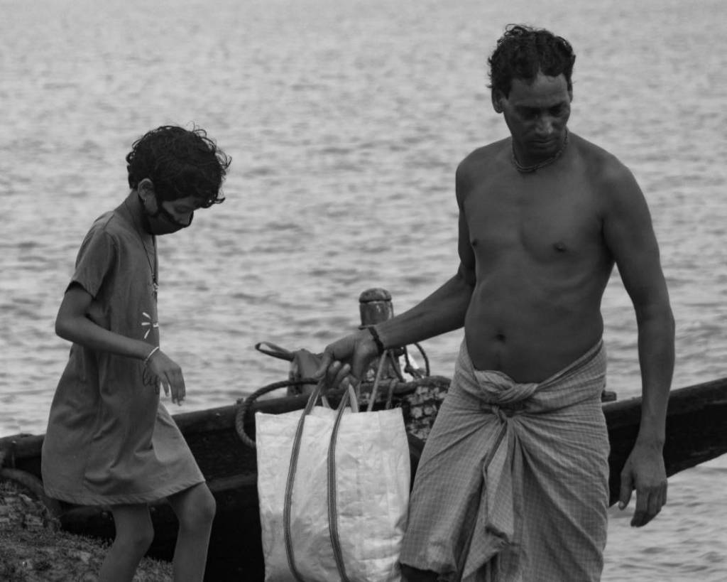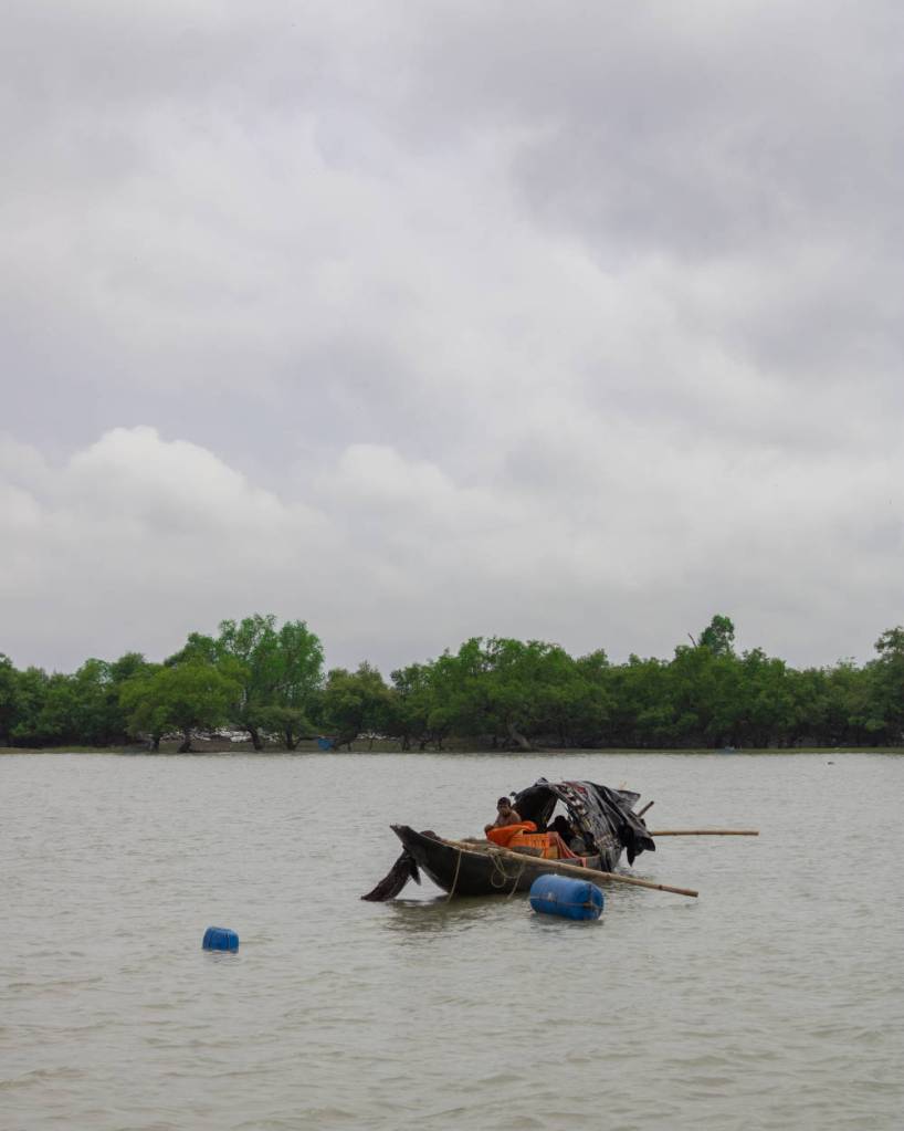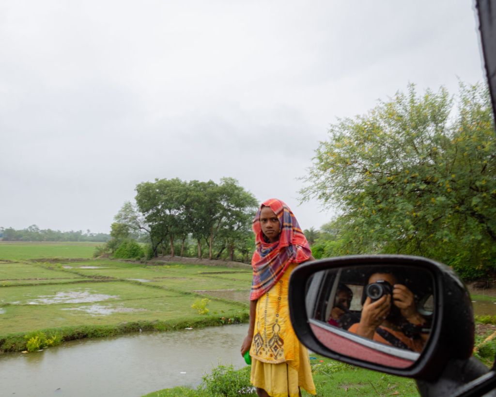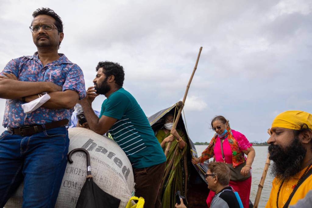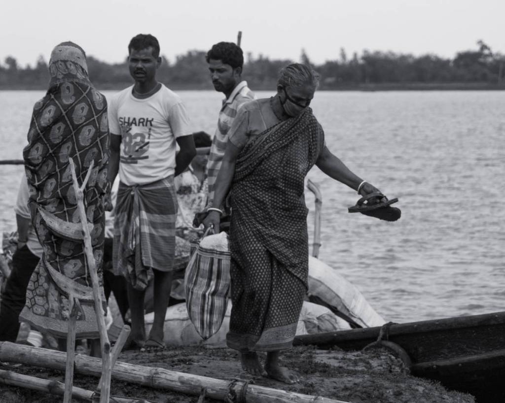 The journey to Kumirmari consisted of a 64 kilometer drive from Kolkata to the town of Nazat, on the bank of the Betni river. This was the first leg of the journey. The second leg of the journey was a two and a half hour boat ride to Kumirmari.