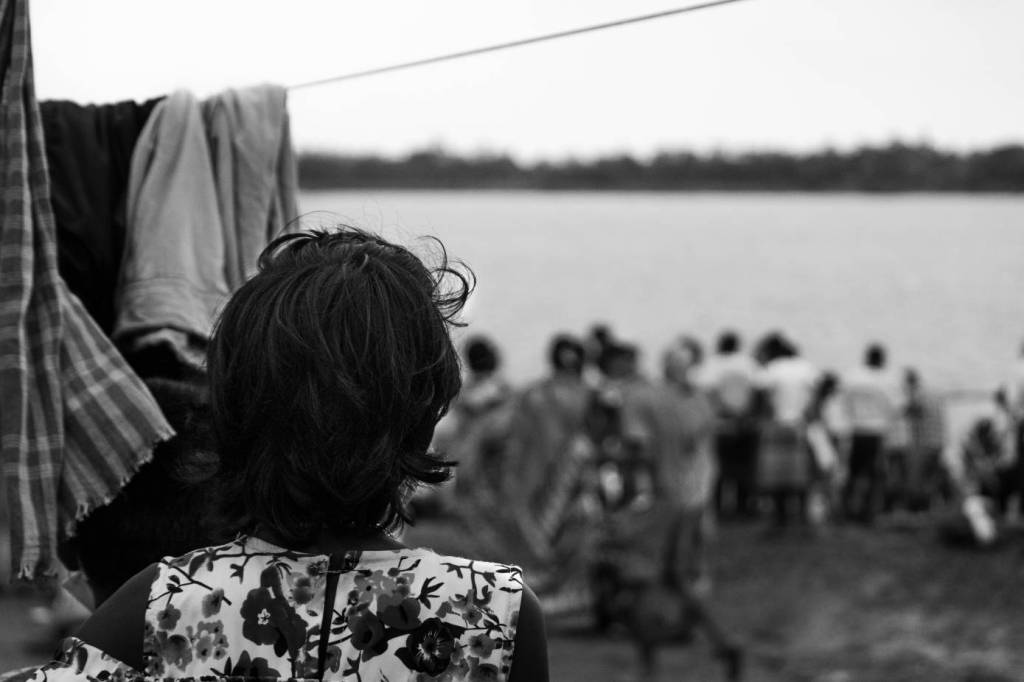 The people of Kumirmari waiting at the river bank.