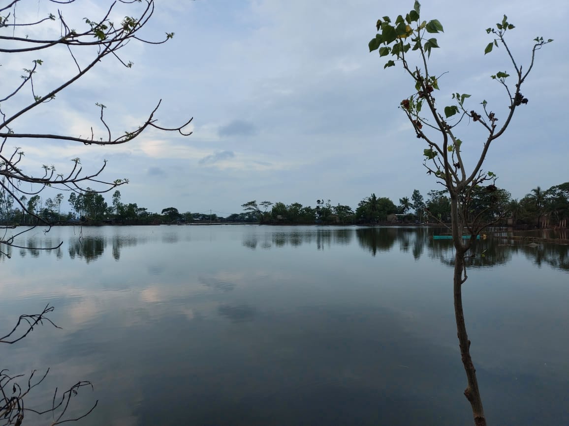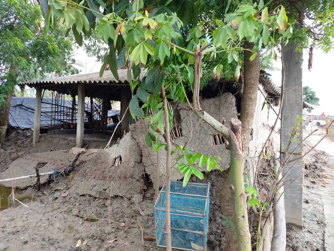 On top of all these difficulties, this was most likely not a one-off. Cyclone Yaas was the second in two years, the first being Cyclone Amphan in May 2020, and there are high chances of this being a regular issue for the residents of villages like these in the Sundarbans. Their houses are destroyed, material possessions lost, fields left inundated due to the saline water that floods them, leaving them unable to cultivate the land for at least three years, seen below.